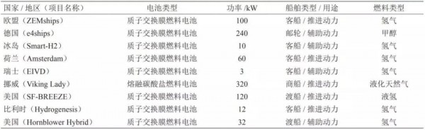 表1:國外主要船用燃料電池推進技術(shù)示范項目